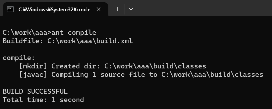 上記の設定変更をした後に、もういちどant実行したところ警告エラーが表示されなくなりました。いい感じです。